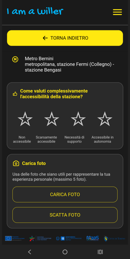 Attraverso la webapp I AM A WILLER è possibile condividere la propria esperienza sull’accessibilità di fermate e mezzi del trasporto pubblico.